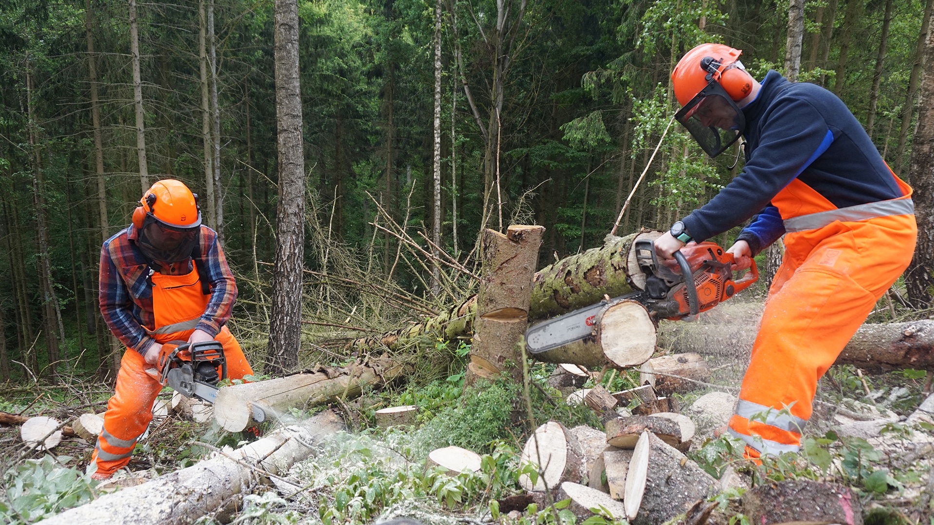 Wir stellen für die Dauer des Kurses Leih-Kettensägen und eine Grundausstattung an persönlicher Schutzausrüstung (PSA) zur Verfügung. Dazu gehören in der Regel Schnittschutzhose, Helm mit Visier und Gehörschutz sowie Sicherheitsschuhe. Wenn Sie bereits eigene, passende PSA besitzen, können Sie diese selbstverständlich gerne mitbringen und verwenden.