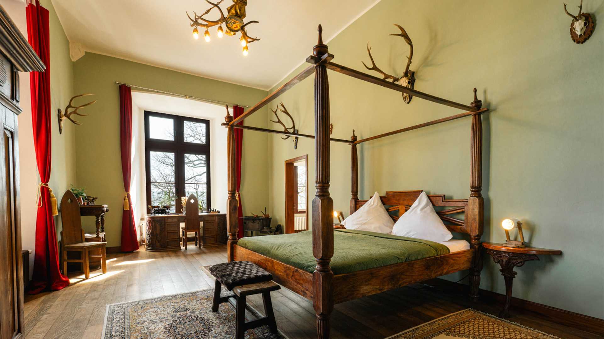 | Schloss-Ambiente | Historisches Gemäuer mit stilvoll eingerichteten Zimmern und öffentlichen Bereichen. Die Architektur und Innenausstattung spiegeln die lange Geschichte des Anwesens wider und bieten ein authentisches Erlebnis. |