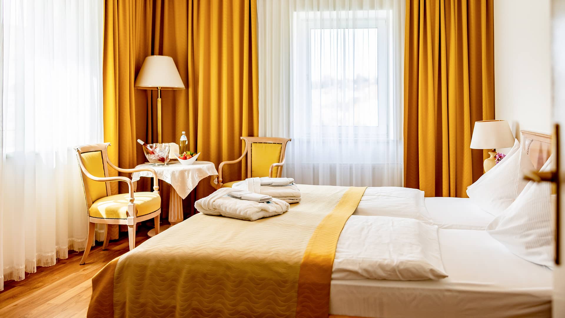 Wir arbeiten mit sorgfältig ausgewählten 3- bis 4-Sterne-Hotels oder charmanten 4-Sterne-Pensionen in Steyr zusammen. Der Fokus liegt auf komfortablen, stilvollen und romantisch eingerichteten Unterkünften, die eine angenehme Atmosphäre für Paare schaffen.