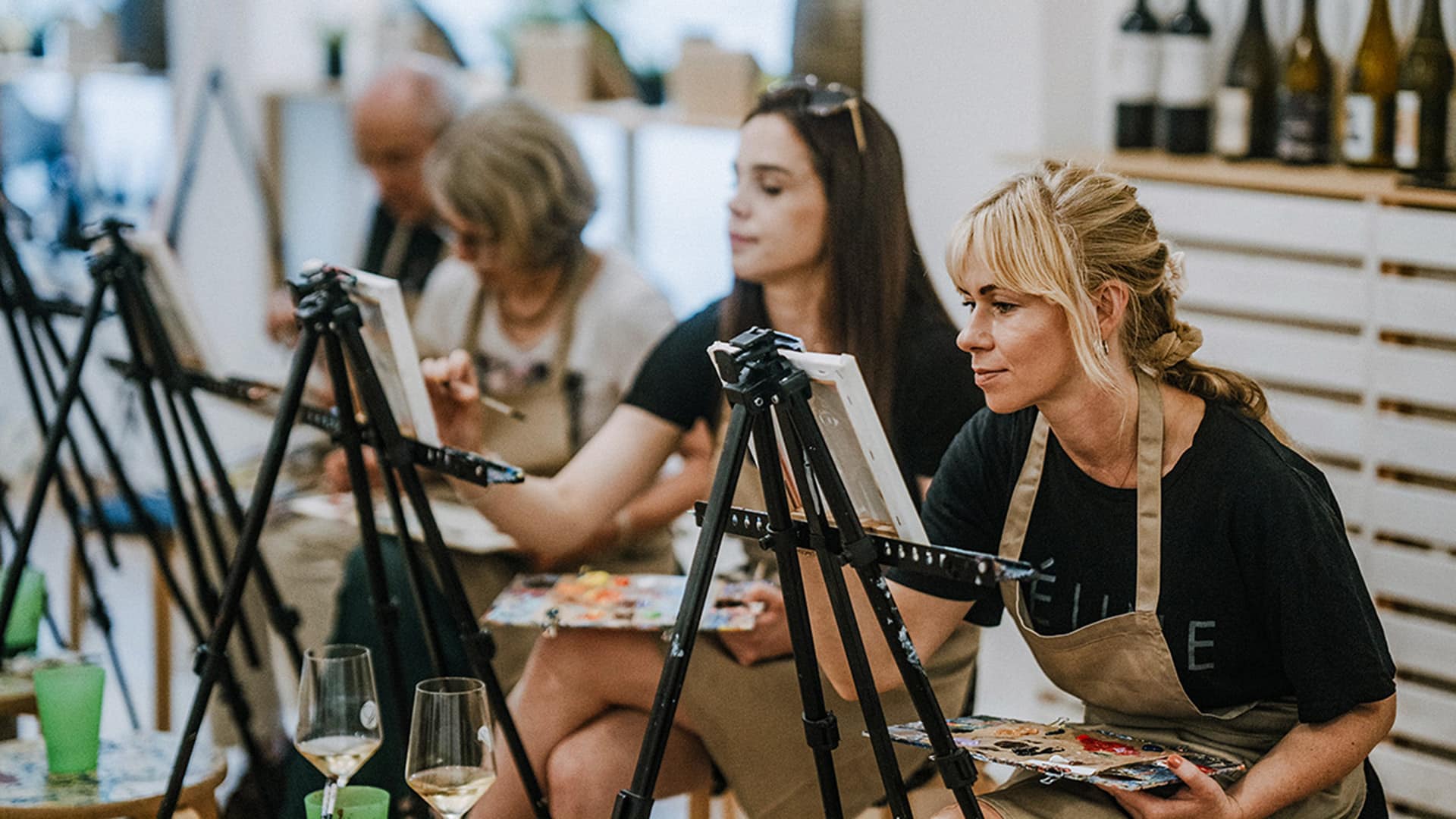 - Hochwertige Materialien: Leinwand, Farben und Pinsel werden gestellt.