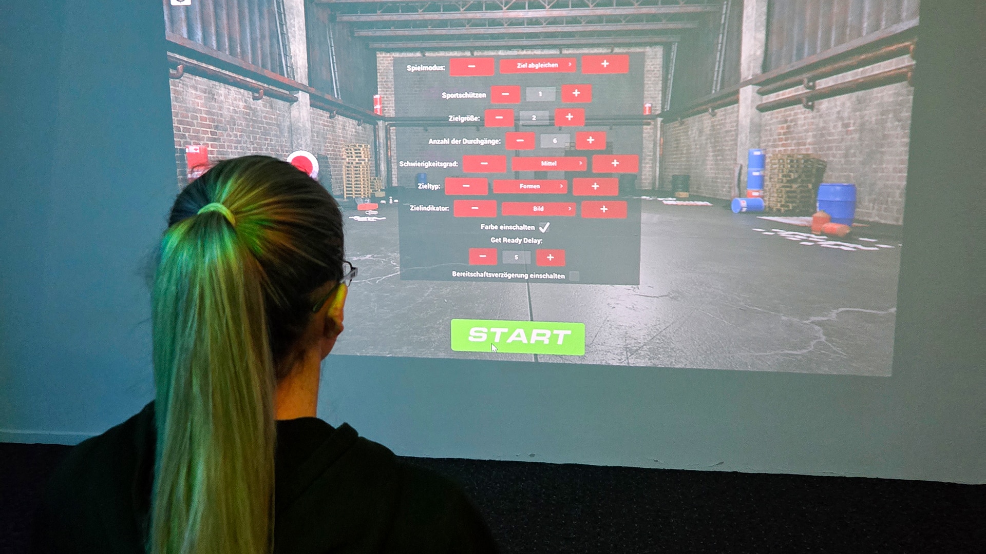 | Zielsystem | Hochauflösende Projektionsleinwände mit diversen Zielszenarien und Punktesystemen. |