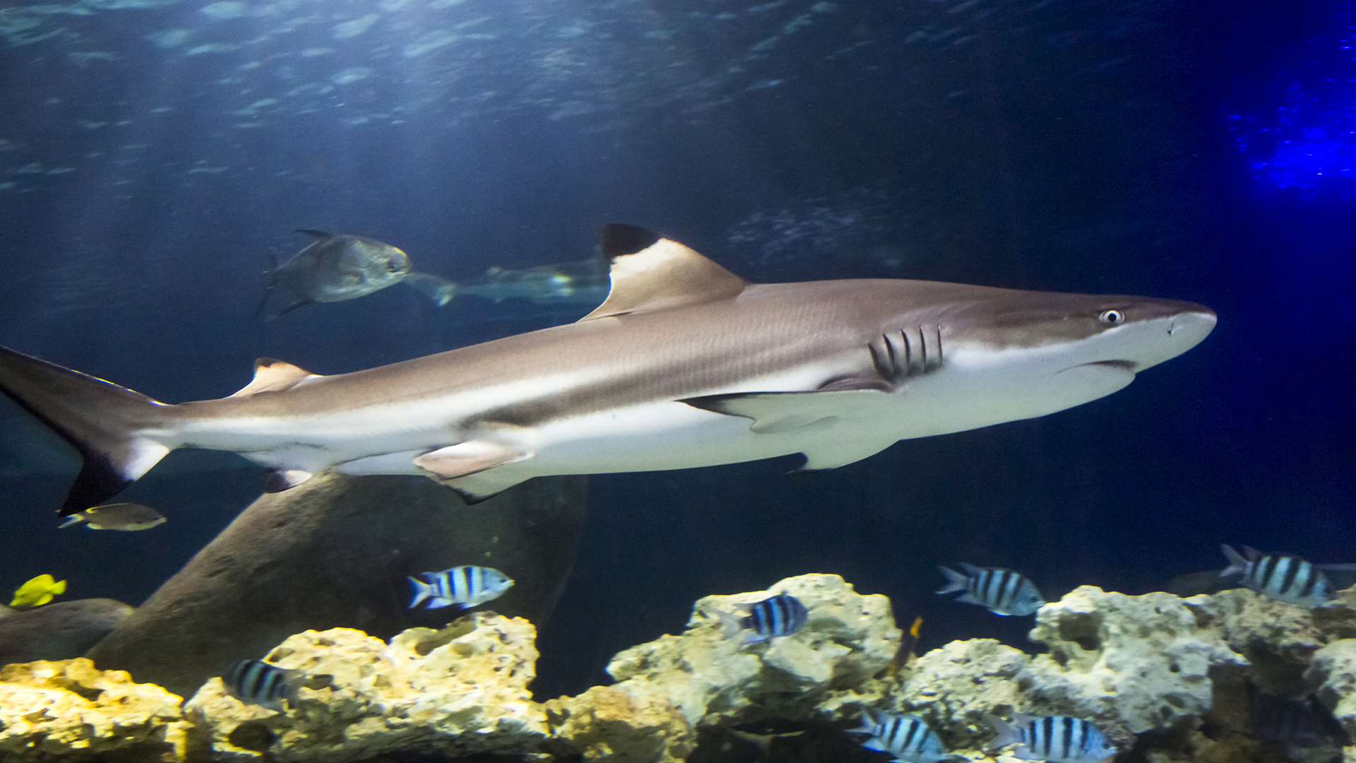 Die visuelle Pracht der Unterwasserwelt ist atemberaubend. Schwärme kleiner Fische ziehen vorbei, während größere Arten gemächlich ihre Bahnen ziehen. Die Detailgenauigkeit der Lebensräume, von den zerklüfteten Strukturen bis hin zu den leuchtenden Farben der Korallen und Anemonen, ist faszinierend. Darüber hinaus wird durch thematische Inszenierungen die Atmosphäre der jeweiligen Lebensräume – von der sonnenbeschienenen Oberfläche bis in die dunklen Tiefen – erlebbar gemacht.