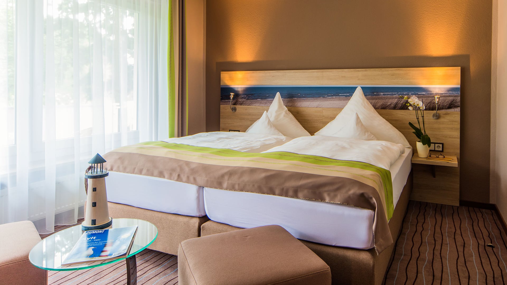 | Unterkunft | Zimmerkategorie: Standard Doppelzimmer (oder nach Verfügbarkeit und Upgrade-Optionen). Ausgestattet mit komfortablen Betten, eigenem Badezimmer, TV und kostenfreiem WLAN. Das Design ist typischerweise modern-funktional mit Fokus auf Gemütlichkeit. |
