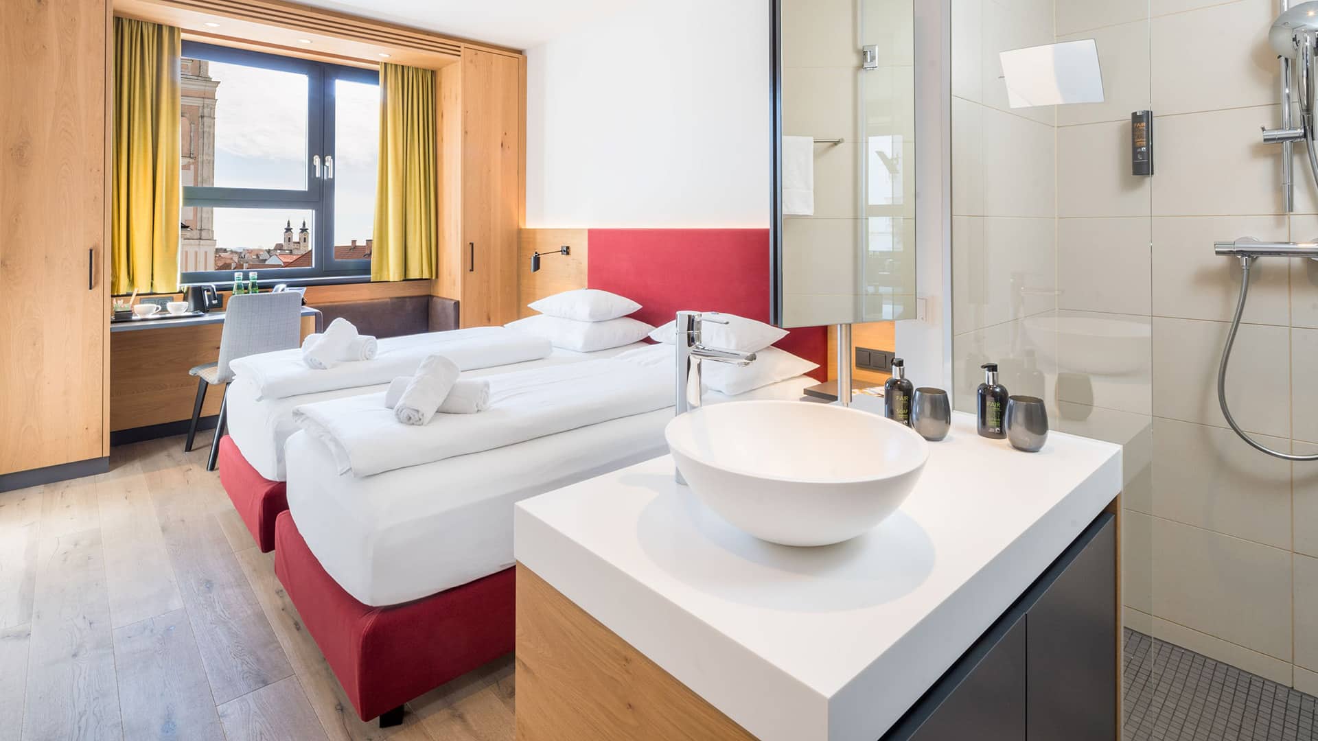| Inklusivleistungen (Beispiele) | Frühstück: Ein reichhaltiges Frühstücksbuffet am Morgen ist oft inkludiert und liefert die nötige Energie für den Tag. Stadtplan/Informationsmaterial: Praktische Hilfsmittel zur Erkundung der Stadt und zur Orientierung. Potenzielle weitere Extras: Je nach gewähltem Paket können z.B. Ermäßigungen für lokale Attraktionen oder ein Willkommensgetränk enthalten sein. |