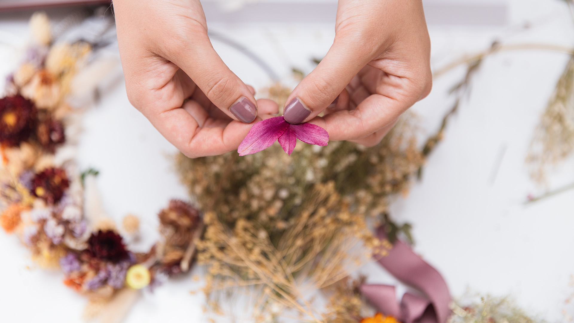 Das Selbermachen eines Trockenblumen Türkranzes ist ein intuitiver und therapeutischer Prozess. Unsere Anleitung führt Sie durch jeden Schritt, von der Vorbereitung der Materialien bis zur finalen Anordnung der Trockenblumen.