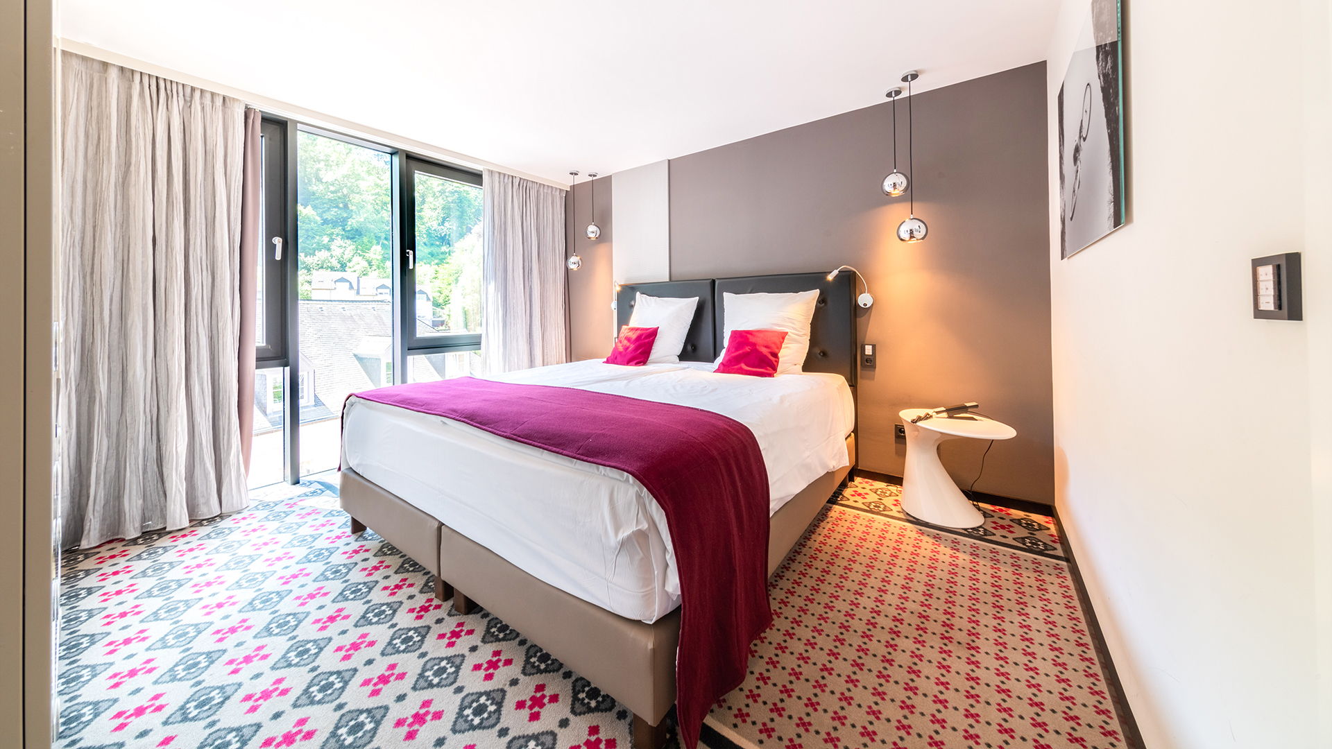Das Designhotel Clervaux ist bekannt für seine innovative Architektur und sein Interieur, das moderne Ästhetik mit behaglicher Atmosphäre vereint. Jedes Detail wurde sorgfältig ausgewählt, um ein harmonisches und inspirierendes Umfeld zu schaffen, das Ihre Sinne belebt und Ihnen eine unvergessliche Nacht beschert. Entspannen Sie in Räumen, die als Kunstwerke für sich stehen und Ihren Aufenthalt zu einem visuellen Genuss machen.