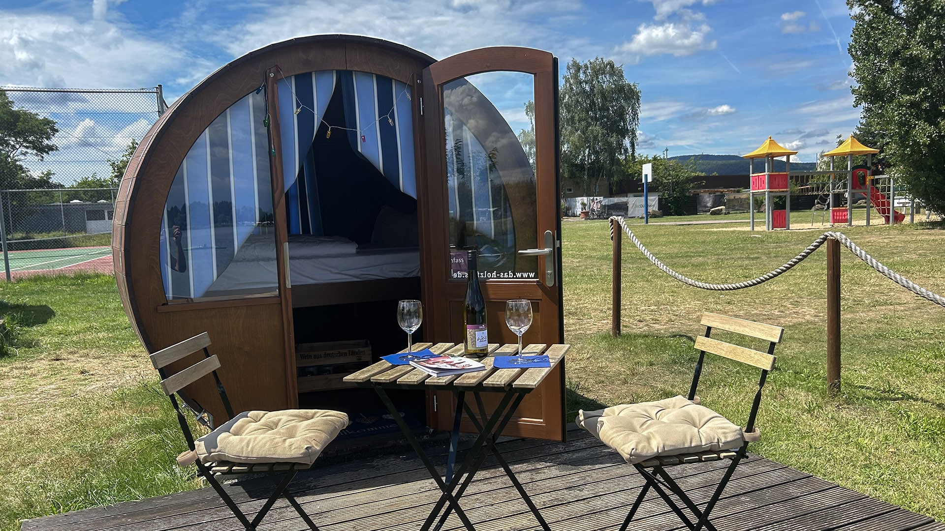 Das Fass bietet eine sehr hohe Privatsphäre. Es ist als eigenständige Einheit konzipiert und bietet einen intimen Rückzugsort. Die Lage der Fässer ist oft so gewählt, dass sie nicht direkt einsehbar sind und ein Gefühl der Abgeschiedenheit vermitteln.