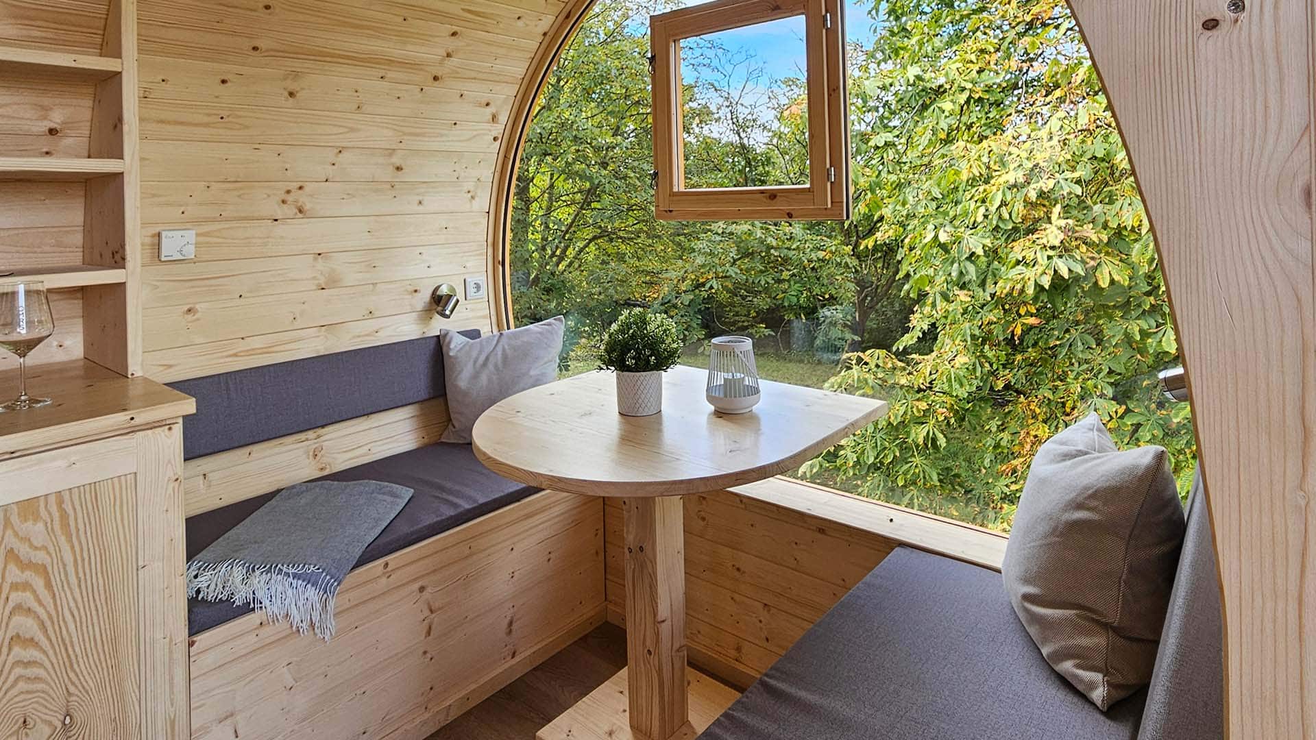 | Innenausstattung | Hochwertiges Bett, Sitzgelegenheit, dezente Beleuchtung, Belüftungssystem. Die genaue Ausstattung kann je nach Fass variieren, beinhaltet aber stets das Wesentliche für einen komfortablen Aufenthalt. |
