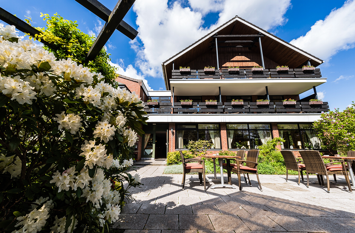 | Lage & Umgebung | Das Wellnesshotel befindet sich in Essel, einer Ortschaft, die Ruhe und Erholung inmitten schöner Naturkulisse verspricht. Die Umgebung lädt zu Spaziergängen und leichten Aktivitäten ein, um das Wohlbefinden zu steigern. |